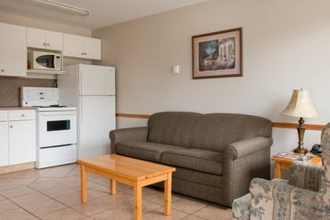 King 1 Bedroom Suite with Kitchen- 1 King bed in bedroom, sofabed in living room with kitchen and full bath. Max 2 adults, Room occupancy 4